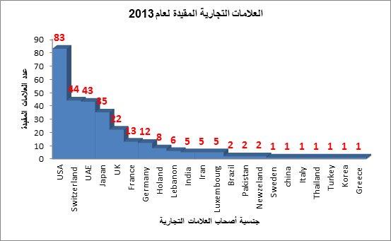 يشهد تقييد العلامات التجارية لدى جمارك دبي إقبالاً متصاعداً من الشركات العالمية، حيث تقدمت العلامات التجارية الأمريكية كافة العلامات المقيدة لدى الدائرة في عام 2013 ليصل عددها إلى 83 علامة توزعت على 22 شركة أمريكية، تلتها العلامات التجارية السويسرية بواقع 44 علامة توزعت على 8 شركات، ثم 35 علامة من اليابان توزعت على 10 شركات، و22 علامة تجارية من المملكة المتحدة توزعت على 5 شركات، ثم 13 علامة من فرنسا توزعت على 6 شركات، و12 علامة من ألمانيا توزعت على 3 شركات، فيما بلغ عدد العلامات التجارية المحلية التي تم تسجيلها لدى جمارك دبي في العام الماضي 43 علامة توزعت على 26 شركة، وكذلك 41 علامة تابعة لدول أخرى.