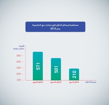 وعلى مستوى وسائل النقل، توزعت تجارة دبي الخارجية إلى التجارة المنقولة بواسطة وسائل النقل الجوية بقيمة 571 مليار درهم، والتجارة المنقولة بواسطة وسائل النقل البحرية بقيمة 501 مليار درهم، والتجارة المنقولة بواسطة وسائل النقل البرية بقيمة 210 مليار درهم.