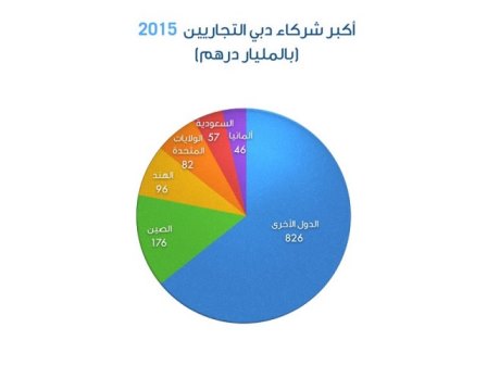 وحافظت دبي على تنوع أسواق تجارتها الخارجية، حيث تصدّرت الصين قائمة شركاء دبي التجاريين في العام 2015، وبلغت قيمة تجارة دبي مع الصين 176 مليار درهم.
