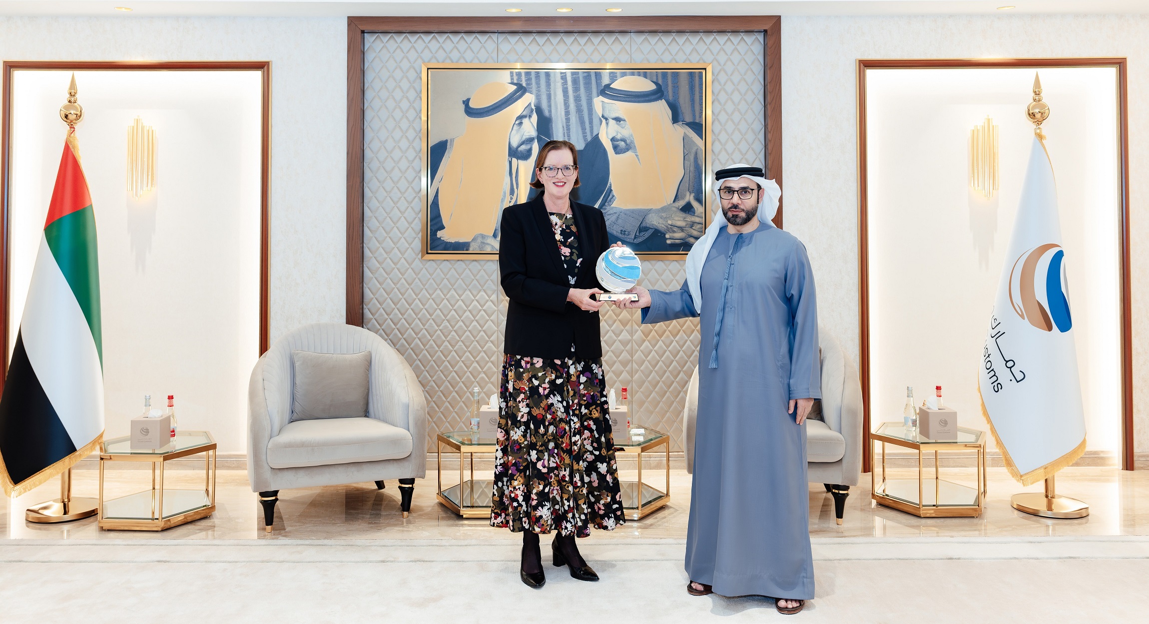 استقبل سعادة الدكتور عبد الله بوسناد، مدير عام جمارك دبي، وفداً رسمياً من نيوزيلندا برئاسة كريستين ستيفنسون، المديرة التنفيذية للمراقبة المالية ورئيسة مجلس إدارة الحدود، وذلك في إطار تعزيز العلاقات الثنائية بين الجانبين ودعم توجهات دبي الاستراتيجية. وجاء اللقاء تأكيداً على حرص الجانبين على تطوير الشراكات الدولية التي تسهم في ترسيخ مكانة الإمارة كمركز عالمي رائد للتجارة والخدمات اللوجستية.