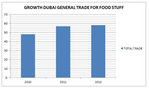 Dubai food foreign trade increased remarkably over the past two years, from AED 48 bn in 2010 to AED 57 bn in 2011.