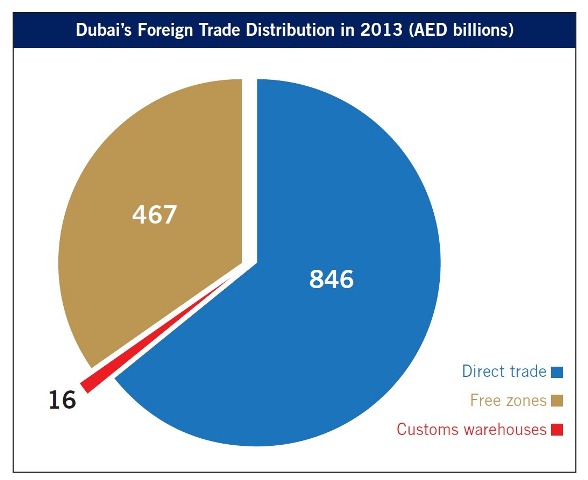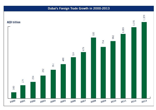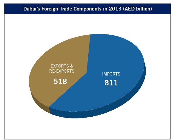 With a new peak for non-oil foreign trade in 2013, Dubai’s rising growth in foreign trade culminates with a volume of AED 1.329 trillion, achieving an AED 94 billion increase from the 2012 value which totalled AED 1.235 trillion.
