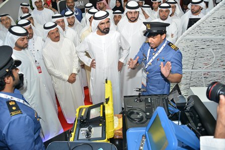During his visit to the DC stand, H.H Sheikh Mohammad was introduced the DC newly developed Unmanned Quad-copter. This UAV was developed in order to assist the Customs inspection operations, specifically for Dhows moored at Dubai Creek. The idea came into realizations as a part of the constant encouragement for pioneer and creative ideas from public employees to put forth creative initiatives, such as innovative ideas, development projects and suggestions that would contribute to improving the government institutions and advancing the community at large.