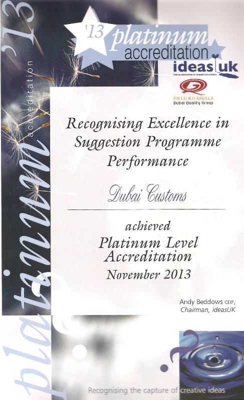 Ahmed Abdul Salam Kazim, Acting Director of Strategy and Corporate Excellence at Dubai Customs, said “This achievement reflects the Customs’ success in developing the Employees Suggestion System, which comes in line with its comprehensive strategy towards elevating Customs performance anchoring it with innovative suggestions and creative ideas”.