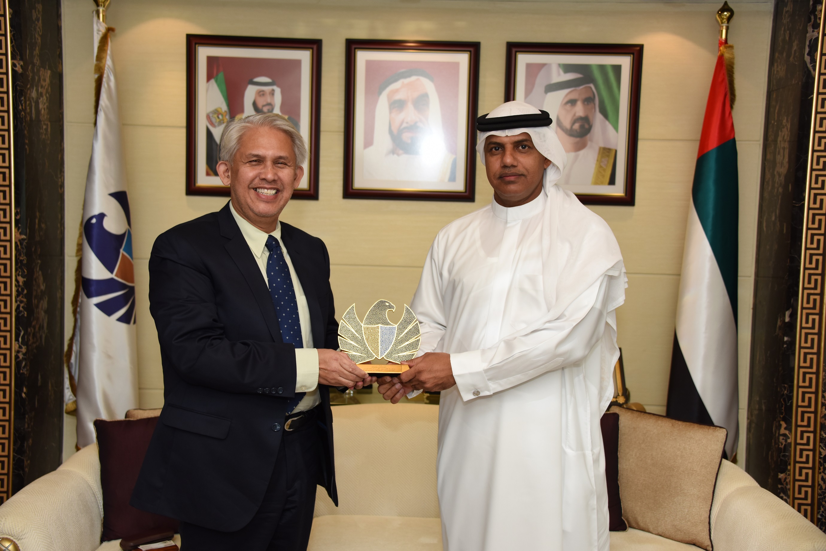 As part of Dubai Customs’ commitment to having stronger ties with foreign diplomatic corps in order to better anchor the Emirate’s trade, HE Ahmed Mahboob Musabih, Dubai Customs Director, received the Indonesian Consul-General in Dubai, H.E Arzaf Fachrezy Firman, to discuss further cooperation and means of reinforcing bilateral economic ties between the UAE and the Republic of Indonesia. The meeting was also attended by Faisal Issa Lutfi, CEO of Dubai Customs World and DC’s External Relations Director.