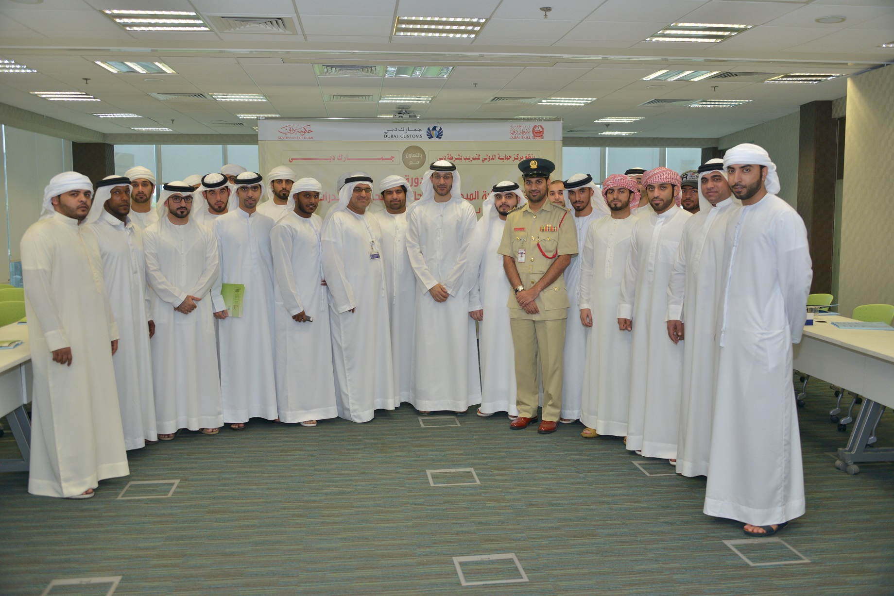 At the end of the program Lt. Col. Khalid Ali bin Mowaizah handed over certificates to the participants in the presence of Abdulla Al Arra , Dubai Customs Training and Development Section Manager, who on his part delivered the Dubai Customs shield to the instructor on behalf of Dubai Police.