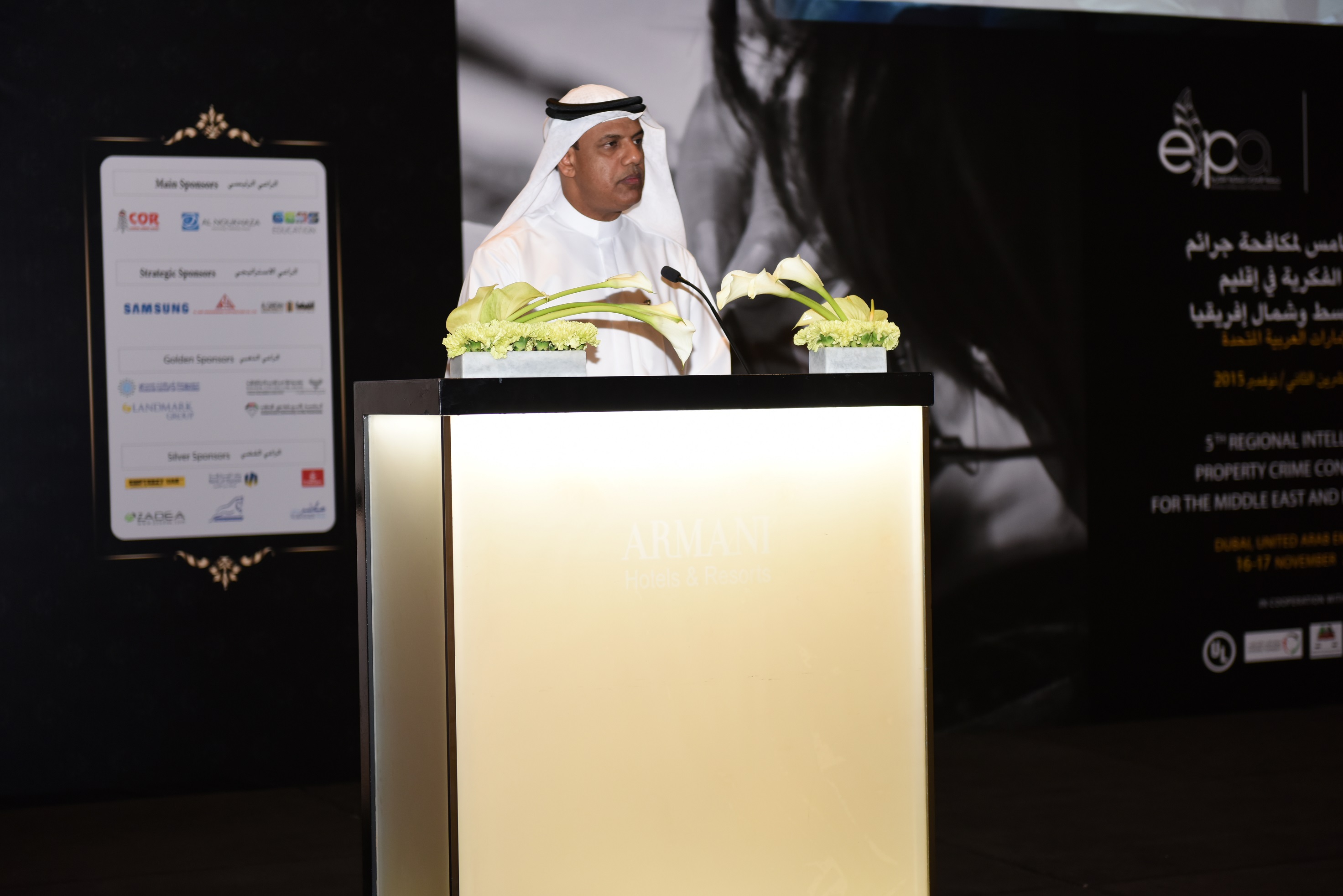 These statements were made by H.E. Ahmed Mahbooob Musabih, the Director of Dubai Customs, in his keynote speech at the 5th Conference on the Fight Against Intellectual Property Crime in MENA. The conference, held under the patronage and in presence of H.E. Lieutenant General Dahi Khalfan, the Deputy Chairman of Police and General Security in Dubai, at Armani Hotel- Dubai on Monday, November 16, 2015, was organized jointly by the Emirates Intellectual Property Association (EIPA), Interpol and Dubai Customs. The conference saw huge participation of government and private entities concerned in IPR protection.