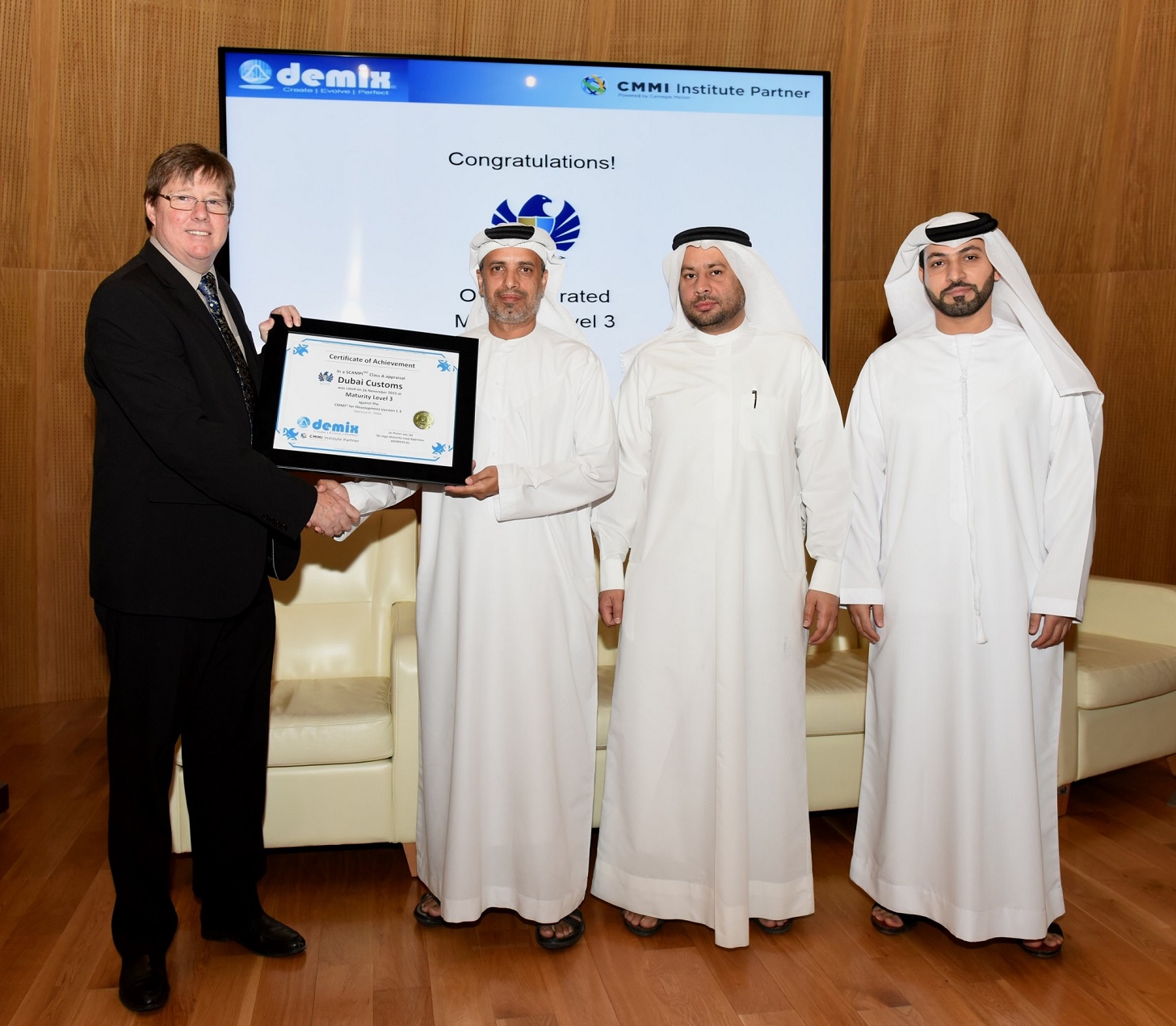 Al Ghaith had earlier received the rating results from Dr. Peter Van Zyl, SEI High Maturity Lead Appraiser of ‘demix’.