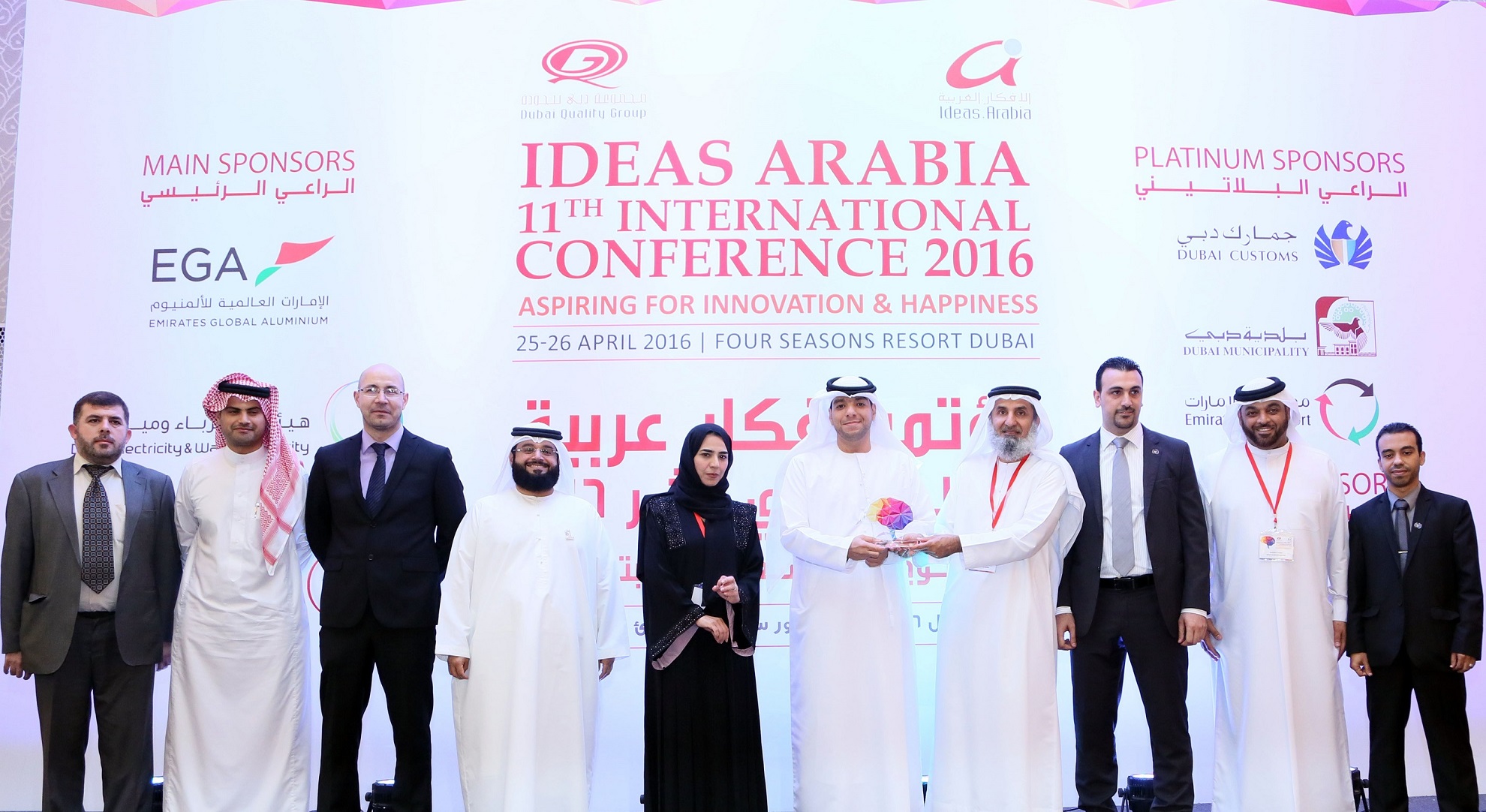 In line with the UAE government’s vision to be one of the most innovative and happiest places to work and live in, Dubai Quality Group (DQG), under the patronage of HH Sheikh Ahmed bin Saeed Al Maktoum, hosted the Ideas Arabia 11th International Conference 2016 on 25th and 26th of April 2016. This year’s conference, themed “Aspiring for Innovation and Happiness”, featured international and local experts in the field of Suggestions & Rewarding Scheme, Innovation, Creativity and Workplace Happiness.