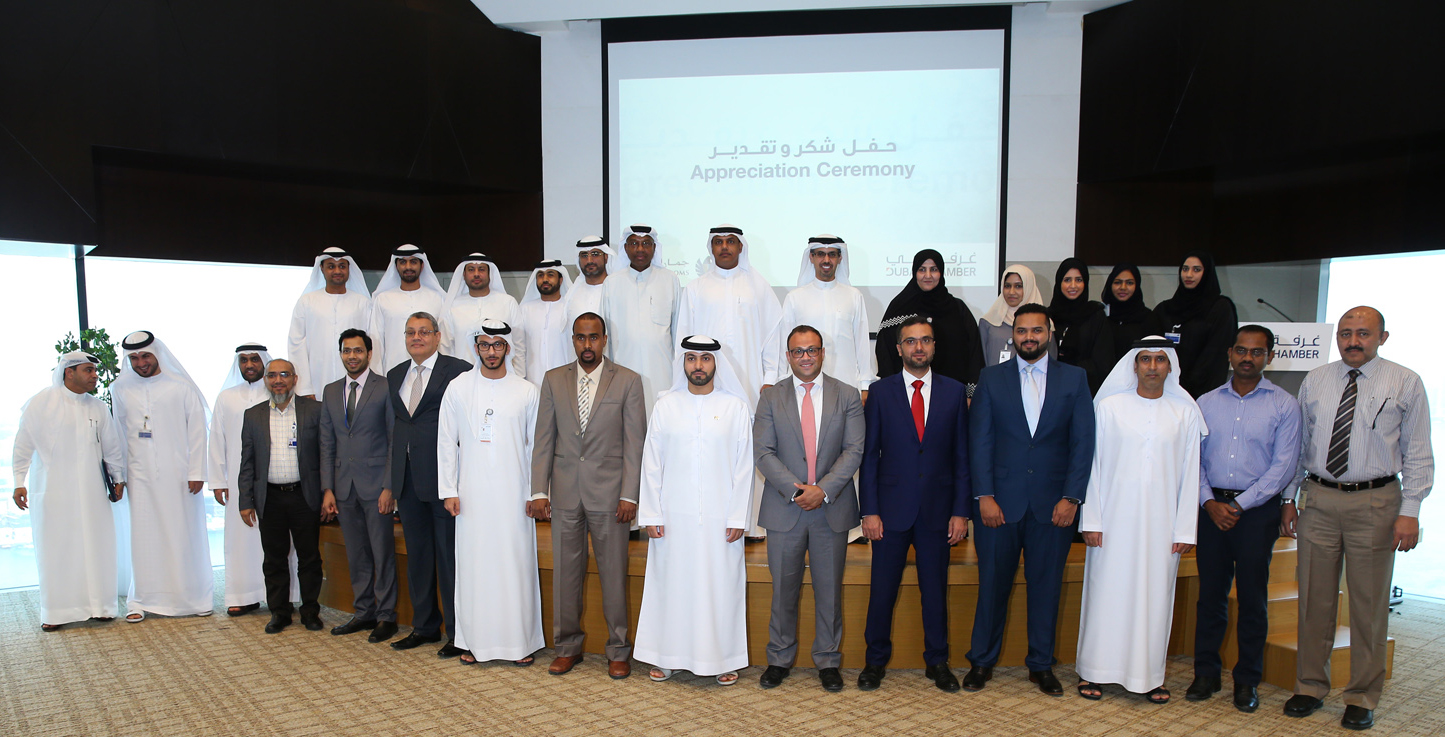 The joint project team of Dubai Chamber of Commerce and Industry and Dubai Customs working on the Risk Engine, developed by the Customs to assess and organise the Certificates of Origin issued by the Chamber through the system of clearing risk-free transactions, were honoured at a ceremony held at the Chamber headquarters on Sunday.