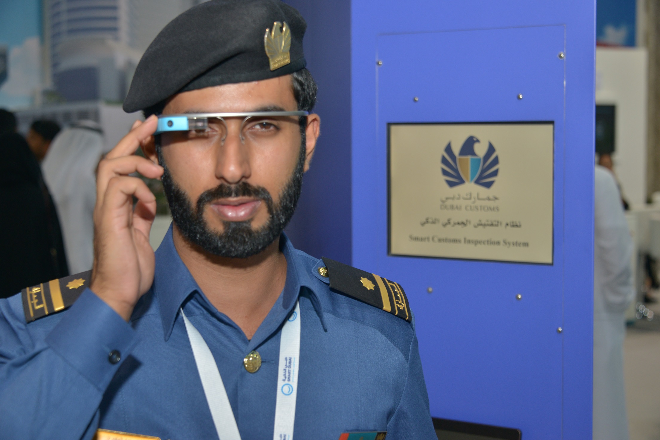 Gitex visitors who stopped by Dubai Customs stand had the opportunity to try out the Smart Inspection Glasses, which facilitate and expedite containers’ field inspection, as Customs inspectors can browse the Customs declaration and x-ray images of the shipment at hand as well as its risk level. Inspectors can submit inspection reports using either the virtual keyboard or voice input feature.