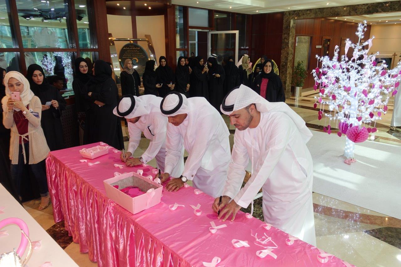 The premises of Dubai Customs wore pink along with breast cancer ribbons. Moreover, a tree of hope was set up in the lobby where well-wishers from DC officials and staff were invited to write down messages of hope, optimism and happiness addressed to all women with breast cancer and their families.