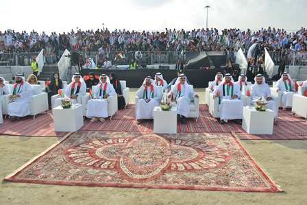 He said "Today we celebrate the UAE National Day to show our deep feelings of love and loyalty to the nation. This love manifests itself in the many great achievements that have been made in such a very short history of only 45 years. Those achievements are the fruits of farsighted vision, hard work and dedication, and we look ahead to a more brilliant future, full of success and accomplishment at the hands of devoted Emirati men and women. We promise to follow the same route of achievements and challenges created by the Founding Fathers".
