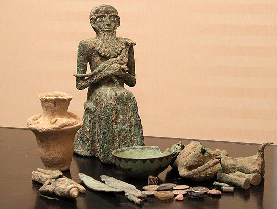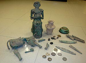 The archeological items included three bronze statues, an ornamented vase, a glazed pottery cup decorated with some fish pictures as well as coins which date back to the Sassanid (226 -651 A.C) and Hellenistic (which started in 323 B.C and lasted for 300 years) eras.